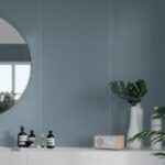This calming grey-blue colour brings a serene atmosphere to your bathroom and is ideal as a smooth wall or with large tile patterns.